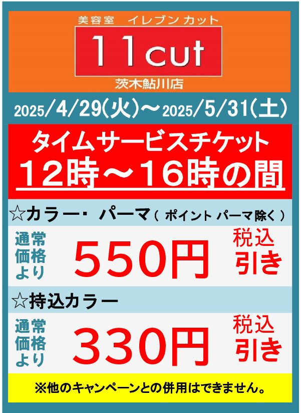 - 2025/07/15 茨木鮎川店 9月2日よりカット受付時間変更のお知らせ